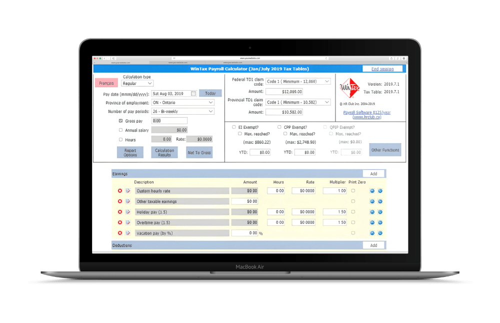 TORONTO, June 30, 2015 /CNW/ – Since 2003 HR Club Inc. has been providing Canadians with a free Windows desktop payroll calculator. HR Club Inc. is now introducing an internet version of WinTax. As an alternative to Canada Revenue Agency’s PDOC payroll calculator, WinTax is designed especially for small businesses and new payroll users.